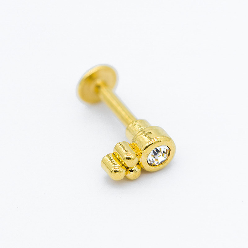 Clear crystal body jewelry gold plated labret stud , One round crystal accessory with three